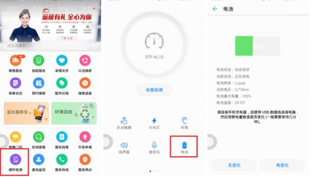 打开【会员服务】 - 点击“硬件检测”- 点击“电池”即可。
