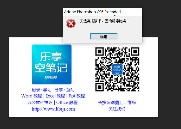 最近使用Adobe Photoshop CS6文字工具时出现“无法完成请求,因为程序错误”;